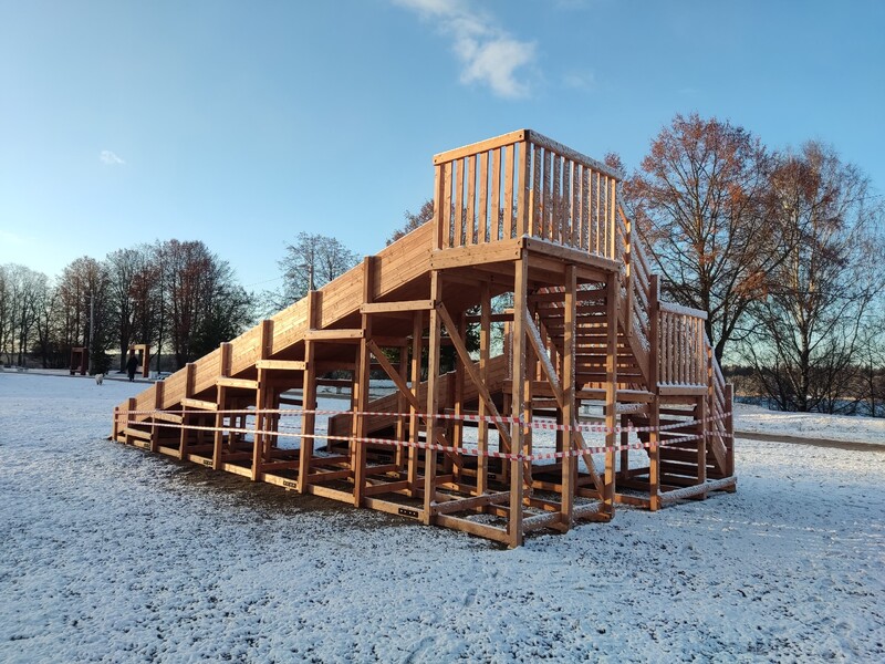 Администрацией МО «Кировск» оборудованы 2 безопасные детские горки для катания, расположенные в верхней части Парка.